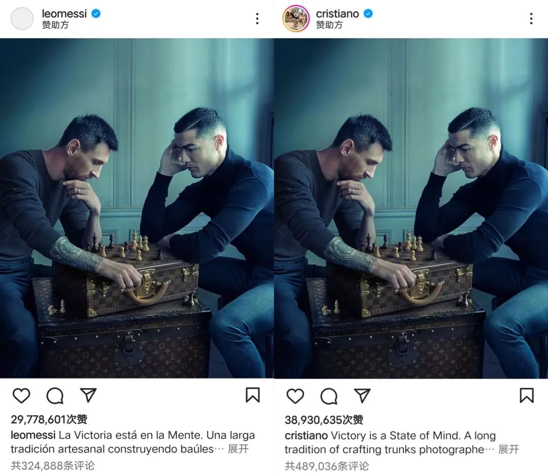 而這張照片僅在Instagram一個平台,C羅、梅西以及LV三個賬號的轉發共獲得了超過7千萬的點擊量