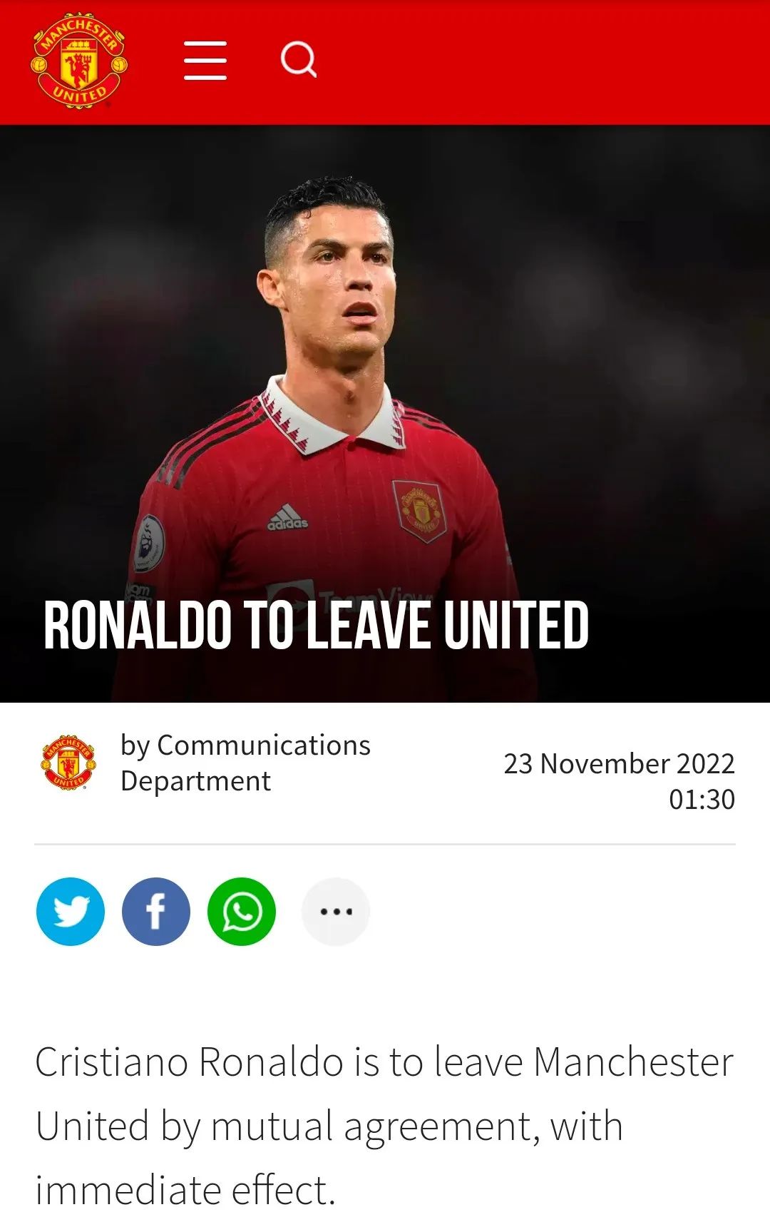 今日淩晨一則世界杯之外的突發消息引爆了球迷圈,英超曼聯俱樂部當地時間11月22日宣布,在雙方達成一致的情況下,