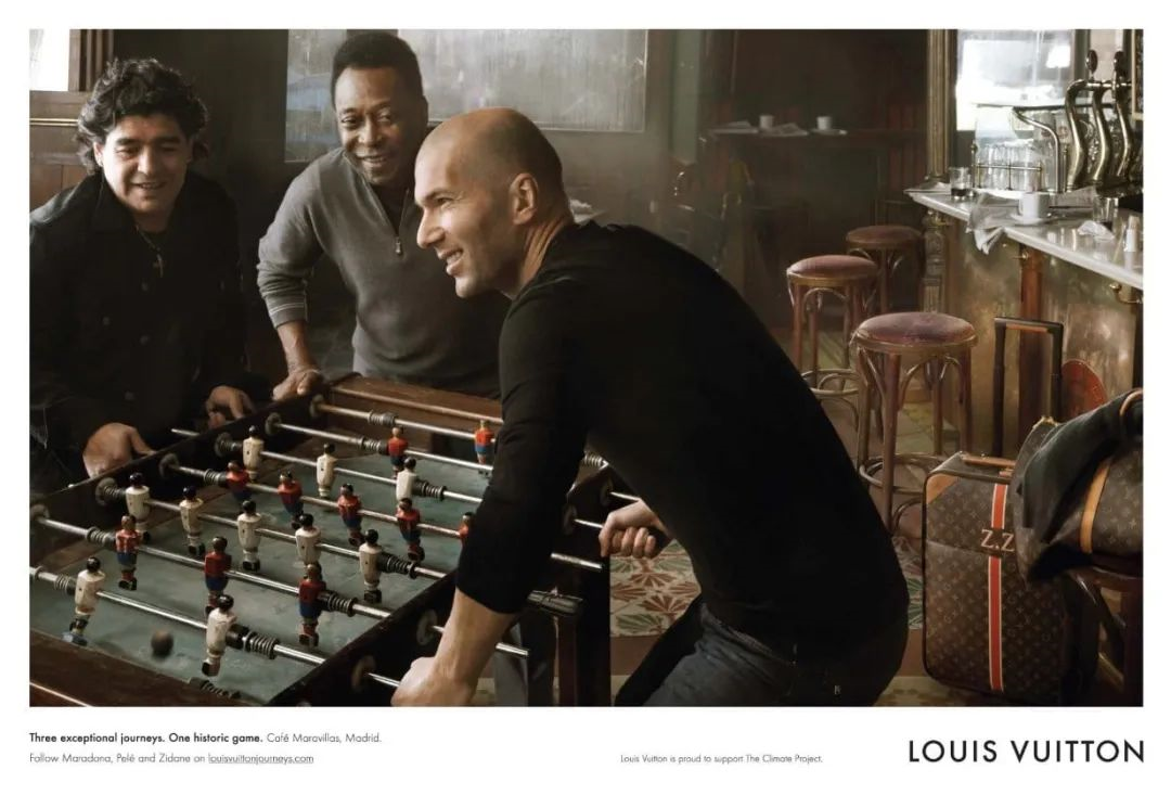 ,早在2010年LV就邀請過齊達內、馬拉多納和貝利出鏡拍攝的廣告大片